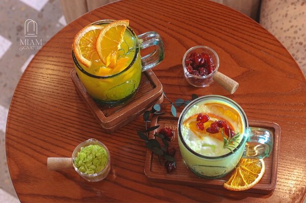 Không chỉ chăm chút cho phần không gian tại quán, thực đơn của Cam Cafe cũng rất chỉnh chu với đa dạng các loại nước uống với mức giá phải chăng, thích hợp cho mọi lứa tuổi.